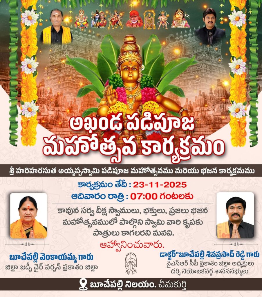 శ్రీ హరిహరసుత అయ్యప్పస్వామి పడిపూజ మహోత్సవము మరియు భజన కార్యక్రమము